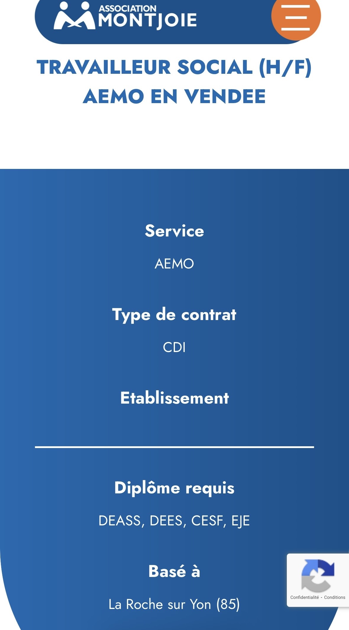 Notre structure partenaire, L'Association MONTJOIE recherche un Travailleur Social H/F pour son nouveau service AEMO en Vendée.